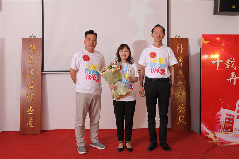 主持人宣布獲得本次活動大合唱比賽冠軍、亞軍和季軍分別是厚積薄發(fā)隊、萬山紅遍隊和逐夢青春隊。