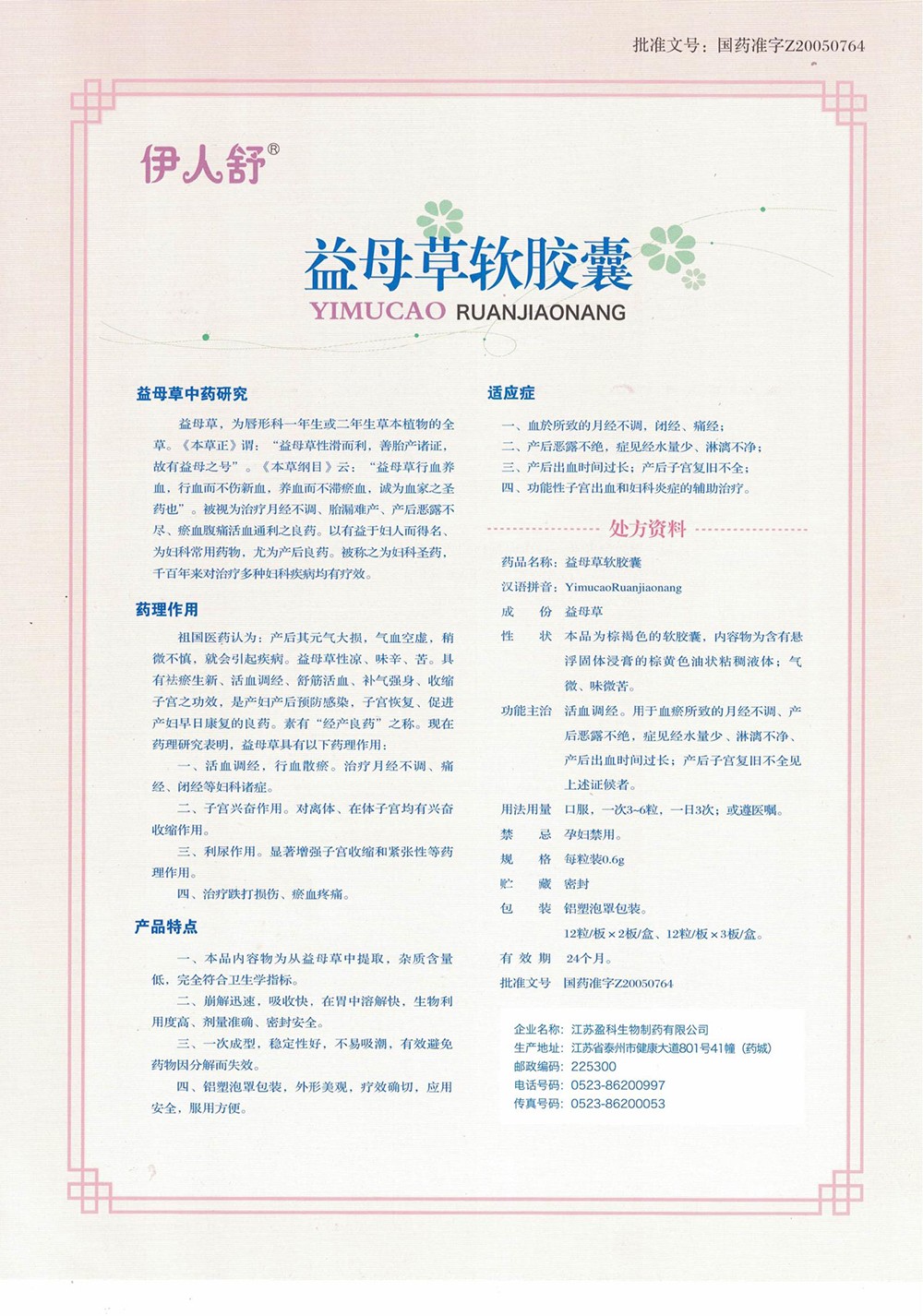 • 產(chǎn)品名稱:益母草軟膠囊